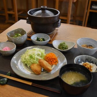 Enjoy vegetable-based dishes and earthenware-cooked rice in a cozy space filled with warm wooden furniture and beautiful pottery.It's a 6-minute wa…