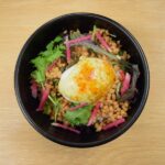 The veggie burger is a cafe staple. It includes a quinoa salad and a large burger. The burger patty is also plant-based and vegan. Made with ground wheat, the patty’s crunchy texture creates a new and delicious flavor. While the burger alone is satisfying, the quinoa salad is also packed with nutrients! It’s packed with seasonal vegetables and grains, and by the time you’ve finished the set, you’ll be satisfied both in your stomach and your heart.