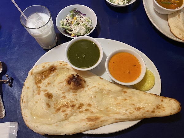 At “Indian-Nepalese Restaurant & Bar Everest Kamata,” you can enjoy a one-curry lunch for ¥930. Other lunch options, featuring two types of curry, start at ¥970. The Everest Special Lunch includes three types of curry, turmeric rice, naan, tandoori chicken, chicken tikka, salad, and a drink—a hearty meal guaranteed to leave you full. Curry spiciness can be adjusted from mild to extra hot. Plus, lunchtime offers all-you-can-eat naan and turmeric rice! The lunch side menu offers a wide variety of options, including tandoori chicken and fish tikka. This time, we ordered a set of butter chicken curry and today’s curry, palak mushroom (spinach and mushroom curry), a set of vegetable curry and dal curry (bean curry), and mutton biryani. The chewy naan complemented the curry perfectly.