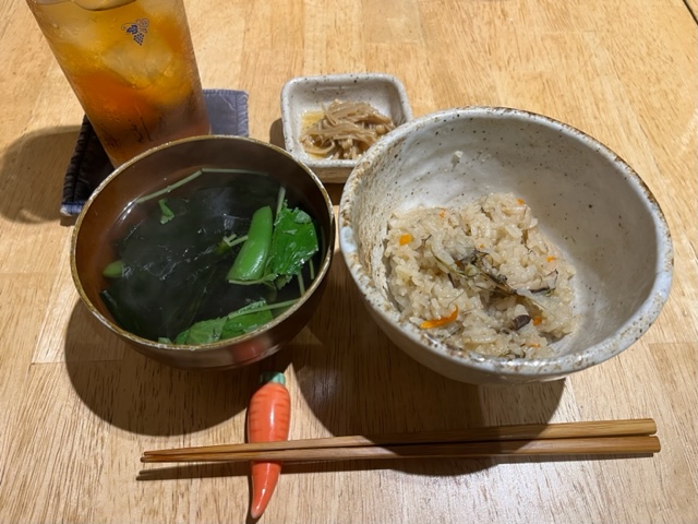 The rice dish. The ingredients here also change with the seasons. The rice is Hinohikari rice from Nara Prefecture.
