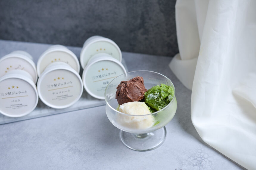 “Mitsuboshi Gelato” is a carefully crafted product made with organic ingredients and comes in three ever-popular flavors: vanilla, chocolate, and matcha.