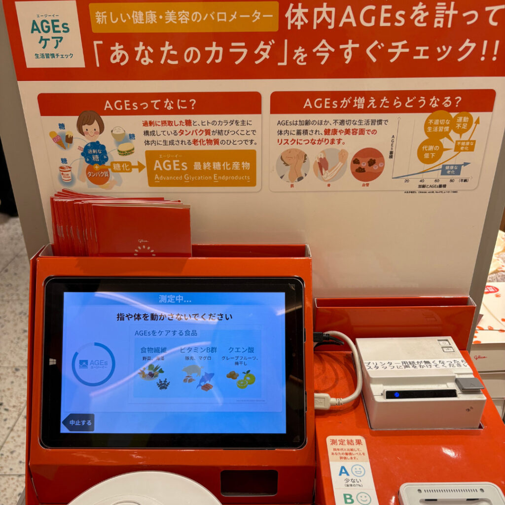 「栄養の宝庫」と呼ばれるアーモンドはビタミンEや食物繊維、良質な脂質を豊富に含むことで知られています。さらに、糖とタンパク質が結びついて生まれる AGEs(糖化最終生成物) を減少させる働きがあることも研究で明らかにされています。AGEsは一度できると体内に蓄積しやすく、糖尿病や腎機能低下、動脈硬化など生活習慣病のリスクを高めるだけでなく、肌老化の要因にもなると考えられています。店内にはなんと AGEs測定器まで設置されており、ドリンクを待つ間にセルフチェックできるのもユニーク。美容と健康に関心のある方にぴったりです。
