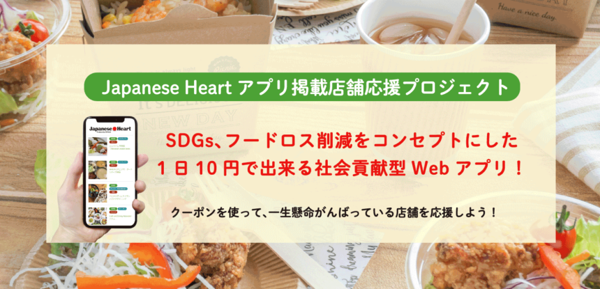 そこで、「Japanese Heart」サイト掲載店舗を少しでも応援して売上に貢献したい、お店を助けたいという思いで今回、クーポン券付きの専用アプリを3月22日発売開始しました。